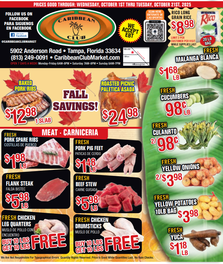 Caribbean Club brings wholesale prices with NO MEMBERSHIP FEE to our customers in Florida. We offer an extensive and diverse selection of Wholesale & Retail Food, Groceries, Hot Food, Deli, Fresh Produce, Fresh Meats, Sea Food, Frozen Meats, Dairy & Frozen Food. We’re here to help you do more with less. We are your one stop for all of your food and grocery needs.